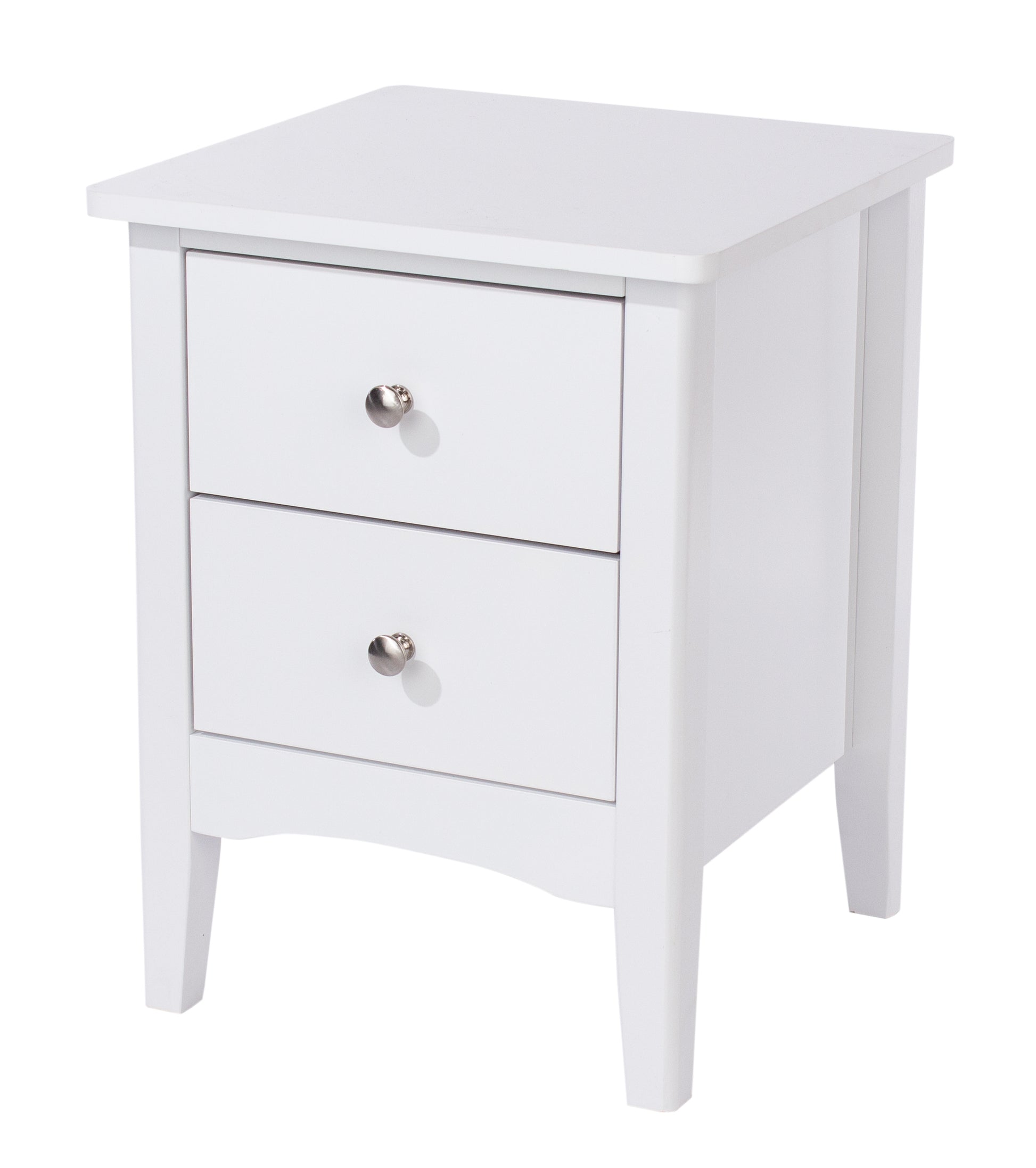 This 2 drawer bedside cabinet features a luxurious white paint finish, complimented with real metal handles and easy glide drawers