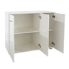 Our 3 door compact sideboard offers a simple, sleek storage solution for you. With double and single sections with fitted full depth shelves there is plenty of space to store anything you want, each door is fitted with metal adjustable self-closing hinges. We use a smooth gloss white film finish which is both hardwearing and easy to clean. Matt silver effect handles and feet complete the look whilst the easy glide drawer is ideal for everyday use.