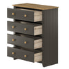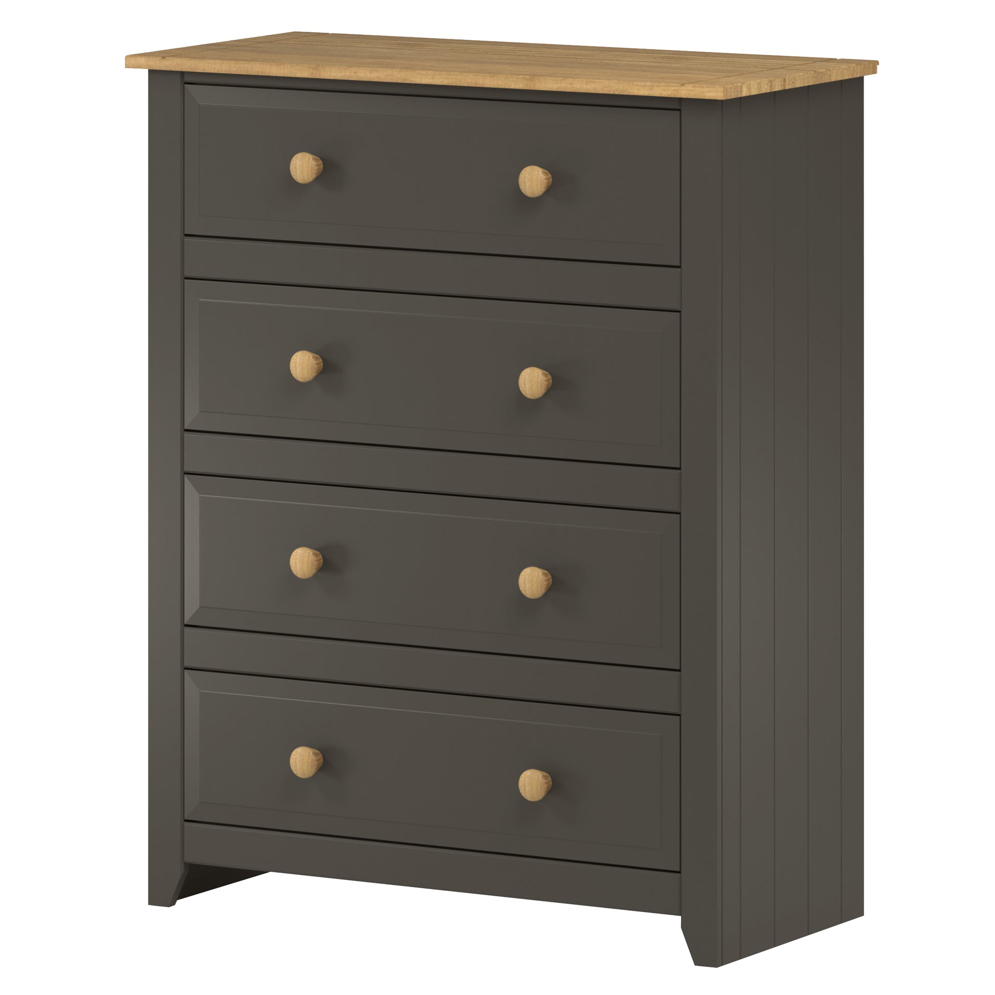 Our 4 drawer chest is finished in a luxurious carbon colour paint and antique waxed pine wood top and matching handles.