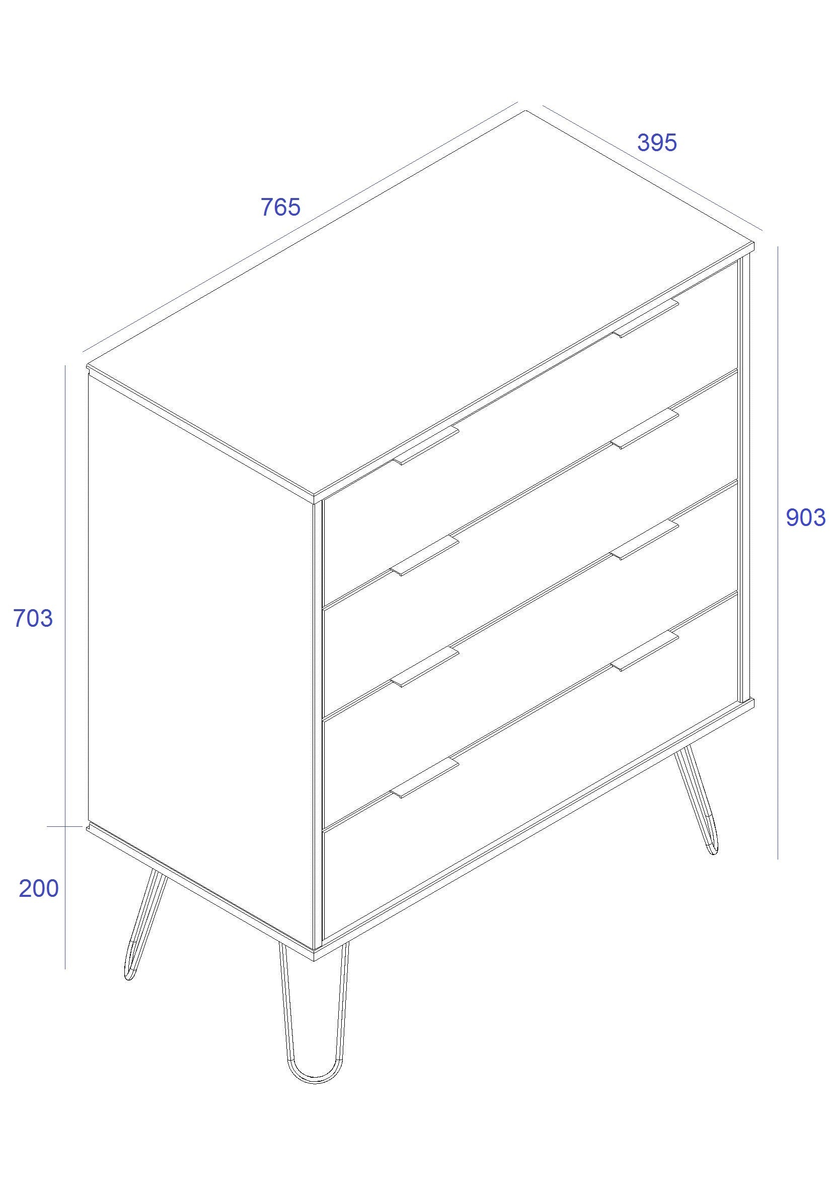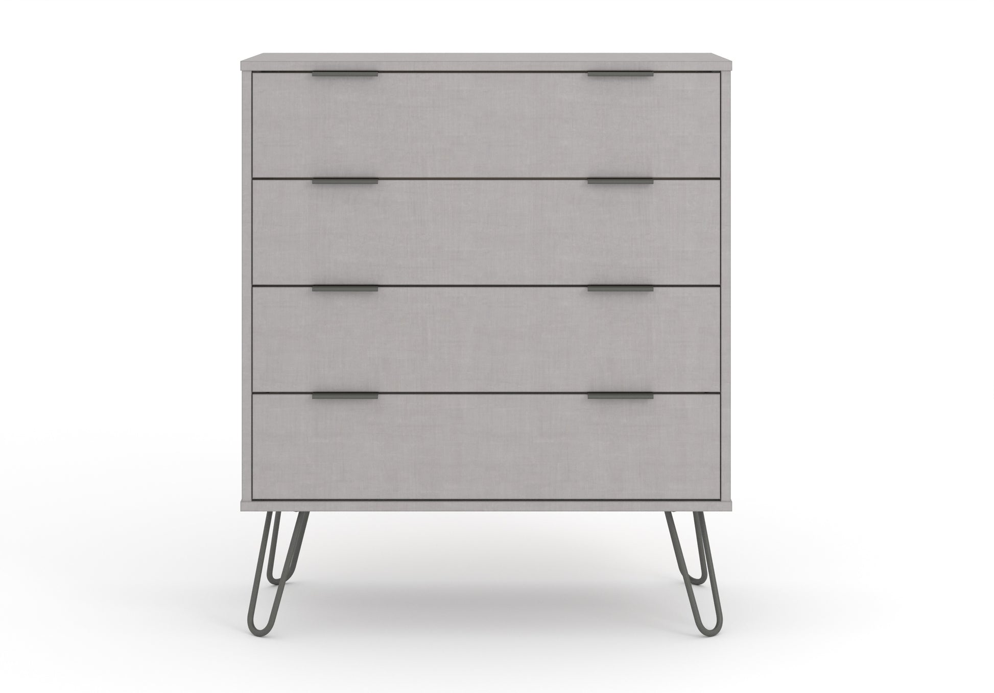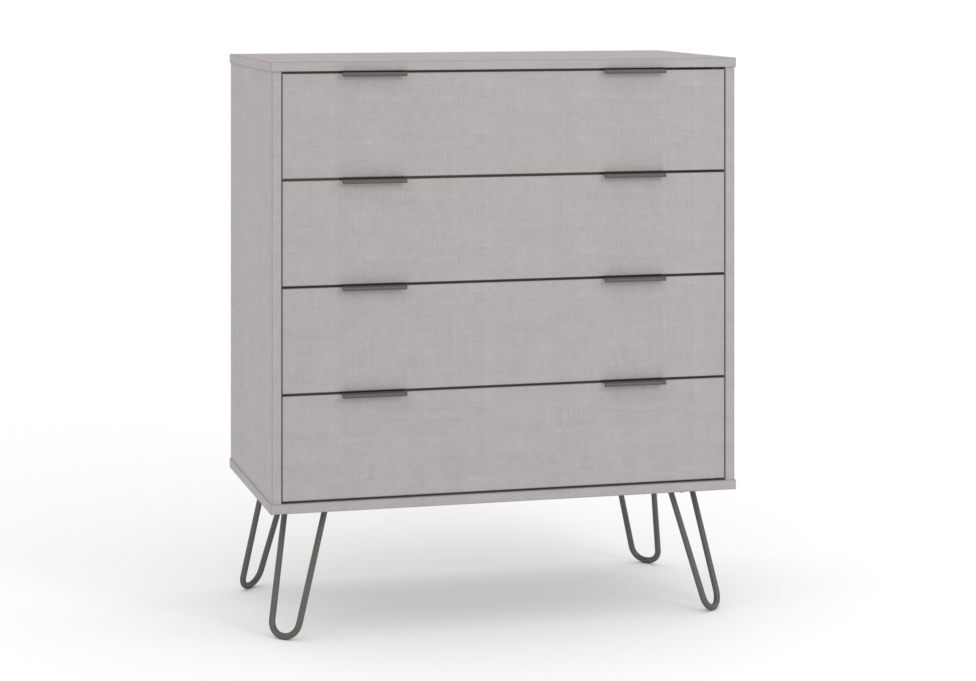 This industrial look chest of 4 drawers combines an hardwearing, easy to clean grey textured melamine finish with plastic pull handles and metal feet.