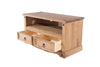 A practically sized flat screen TV unit in antique wax effect with equipment storage and 2 useful dovetailed drawers.