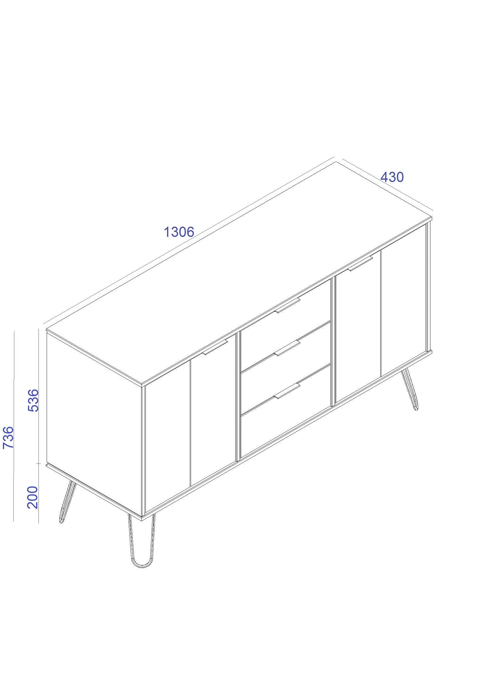 A great combination of drawer and cupboard space, our industrial styled medium sideboard is finished in an antique wax with plastic pull handles and metal feet.