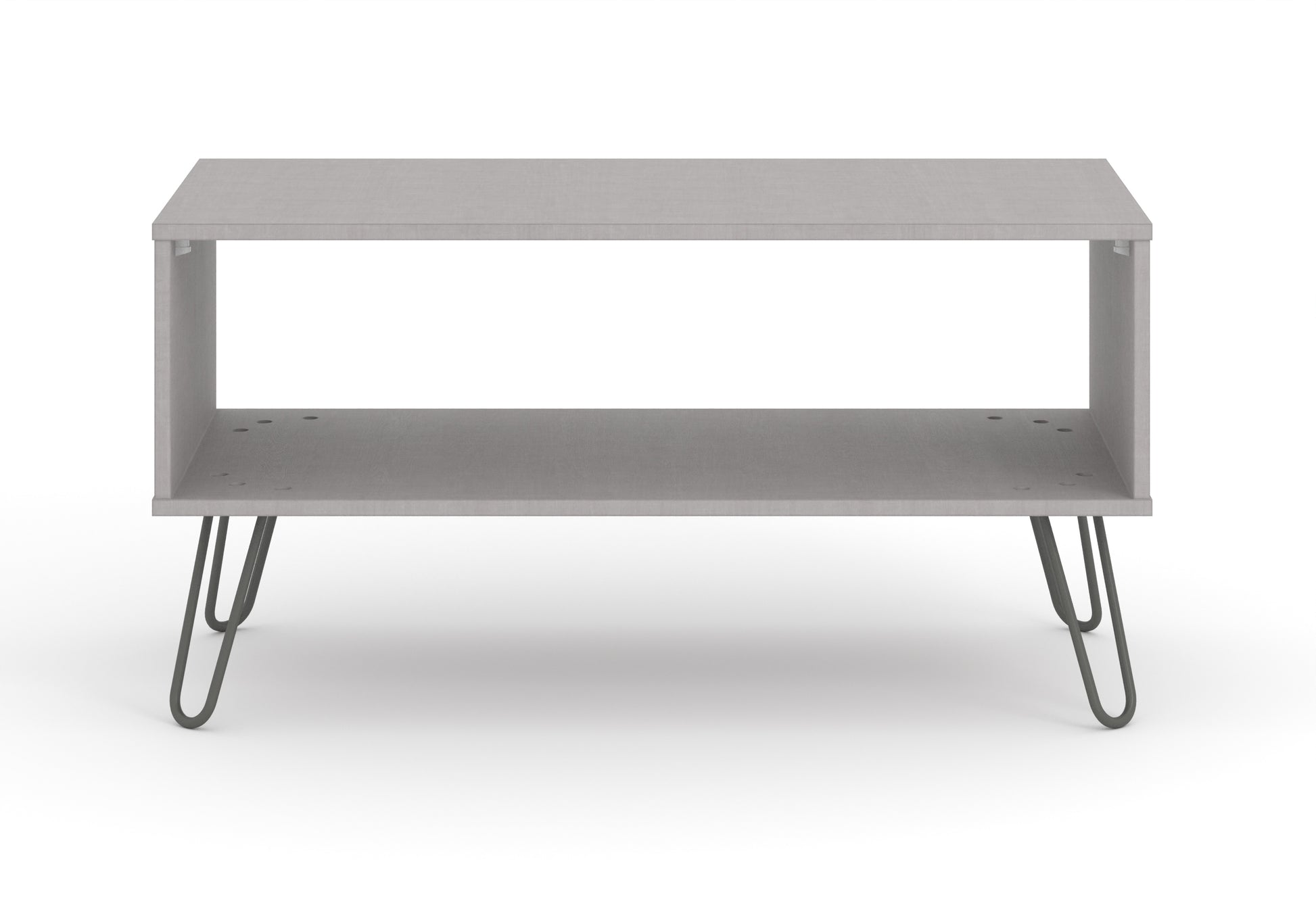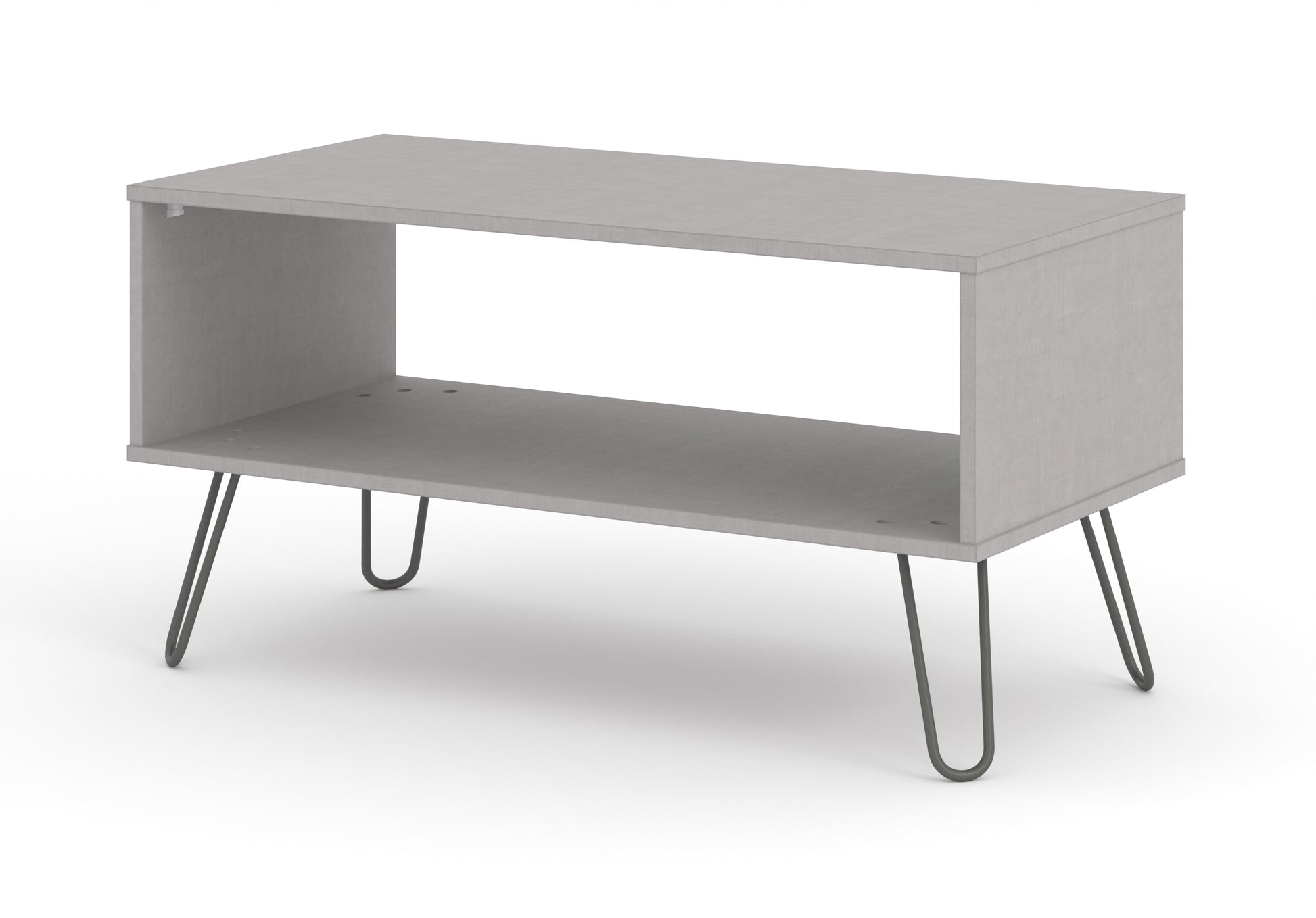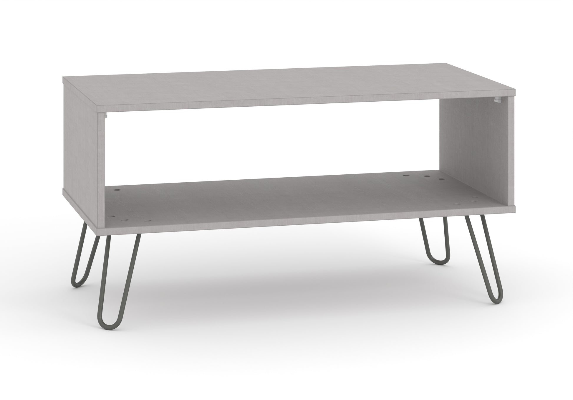 A great centre piece, this industrial look coffee table has useful undershelf storage in an easy to clean grey textured melamine finish with real metal legs.
