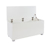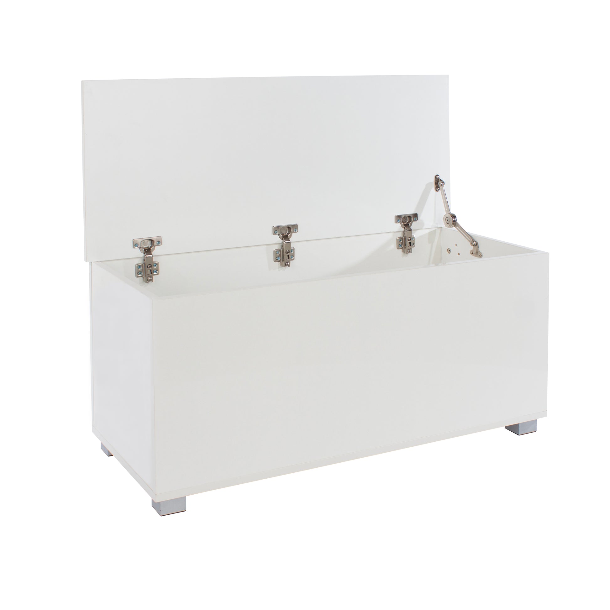 Great for storage space in any room. This storage trunk features a smooth gloss white film finish which is both hardwearing and easy to clean. Matt silver feet complete the look whilst the easy close mechanisim ensures the lid stays open when needed and closes gently .