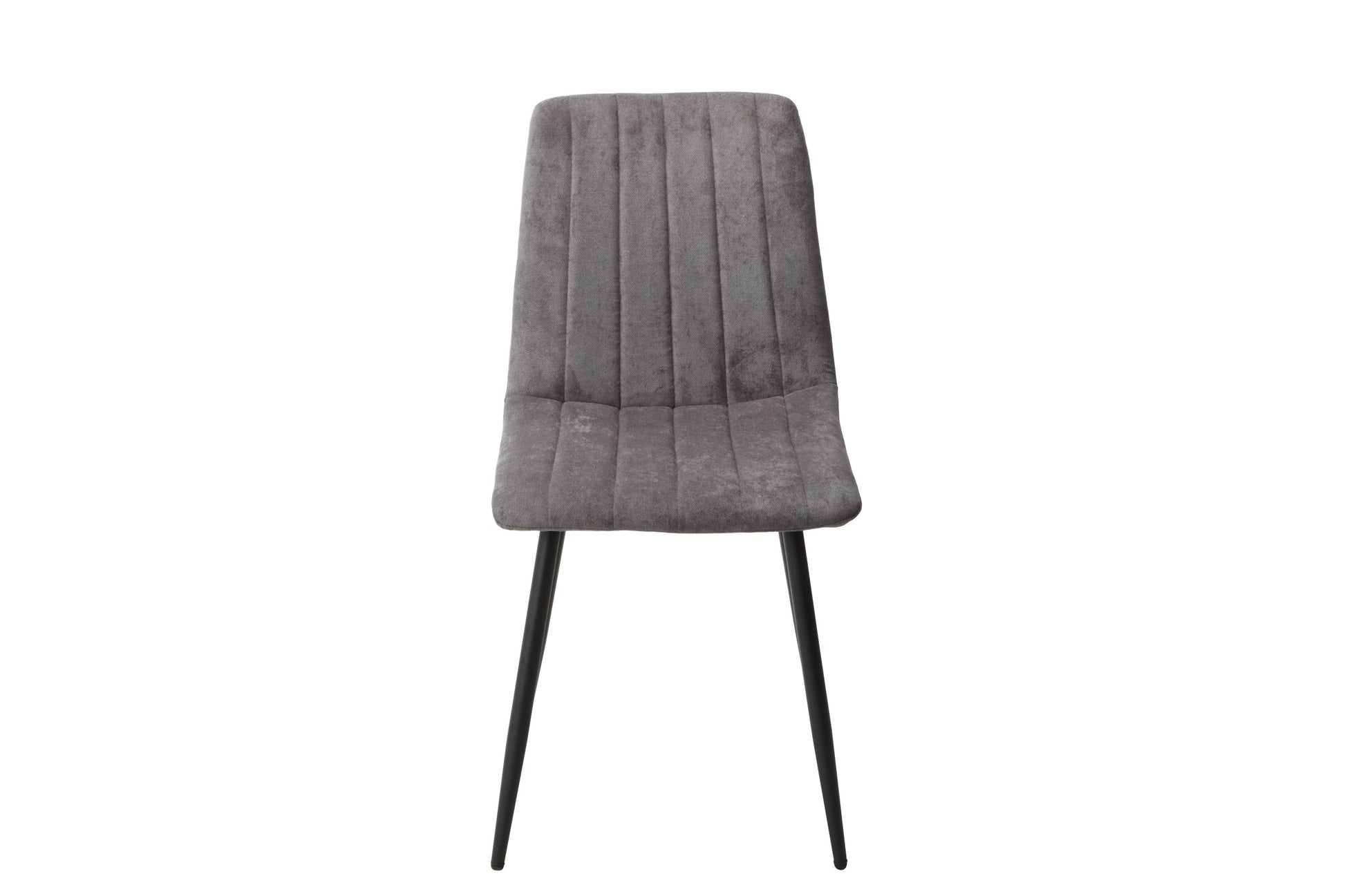 This pair of compact dining chairs provide comfort and practicality. Designed for where space is at a premium, these chairs are upholstered in a medium grey fabric with padded straight stitched design. The interior features soft foam and a plastic injection moulded interior for your comfort. Black painted tapered metal legs complete the look.